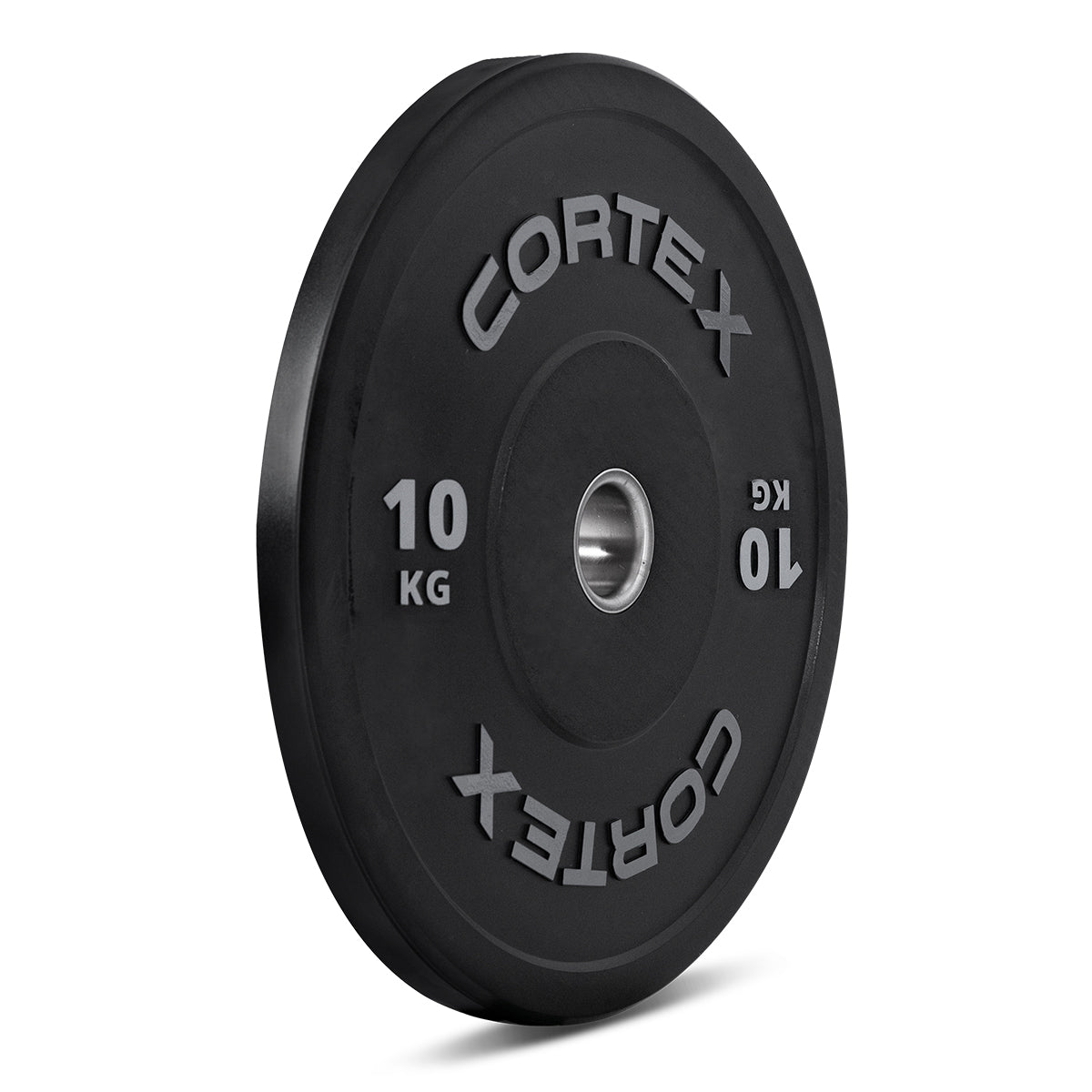 Our CORTEX 10kg Black Series V2 Rubber Olympic Bumper Plates are engineered for serious functional fitness use, Olympic lifting and Cross Fit training. The heavy-duty rubber surface is scratch resistant and designed to withstand high impact lifts. The grooved edges allow for better handling with the steel core offering seamless loading onto the barbell.