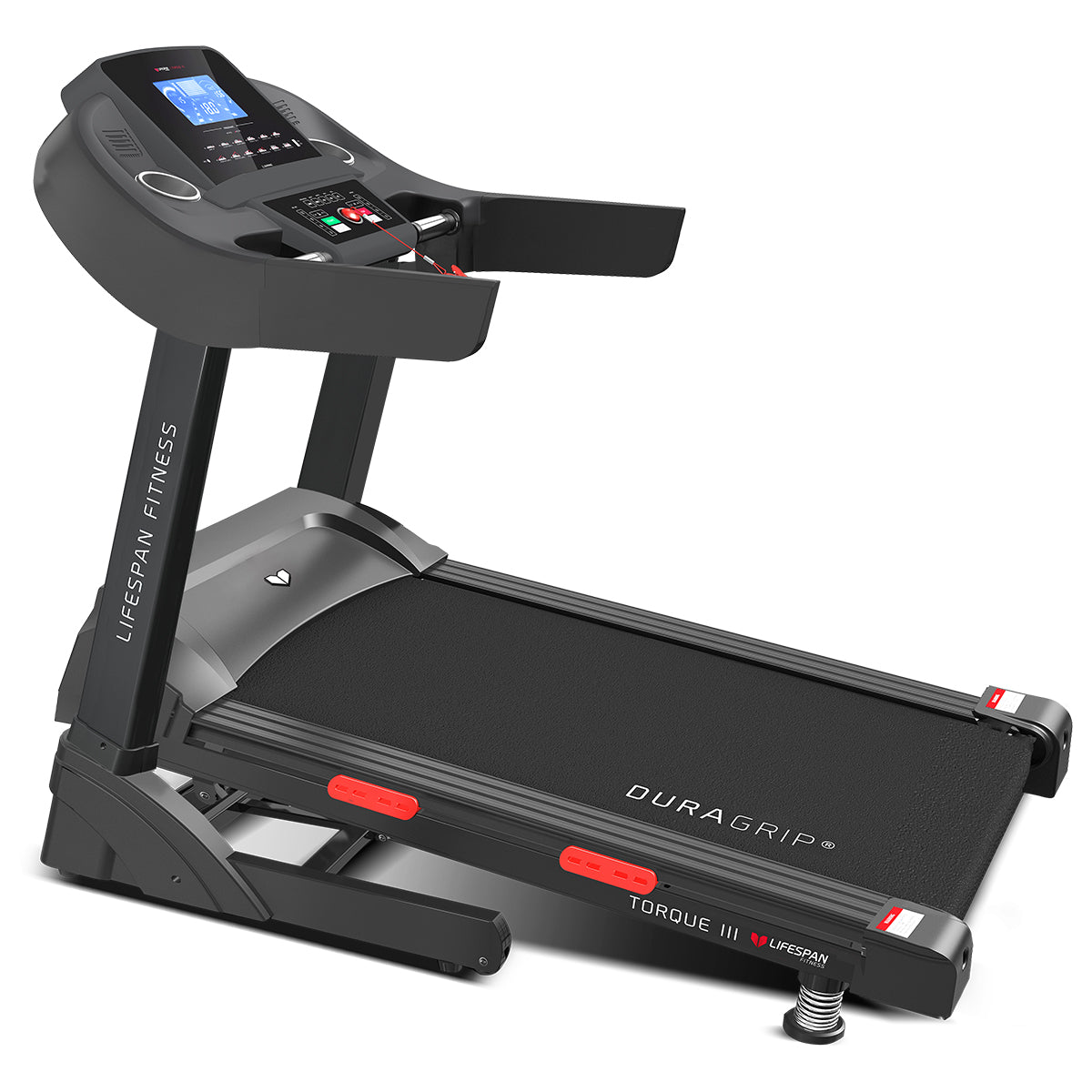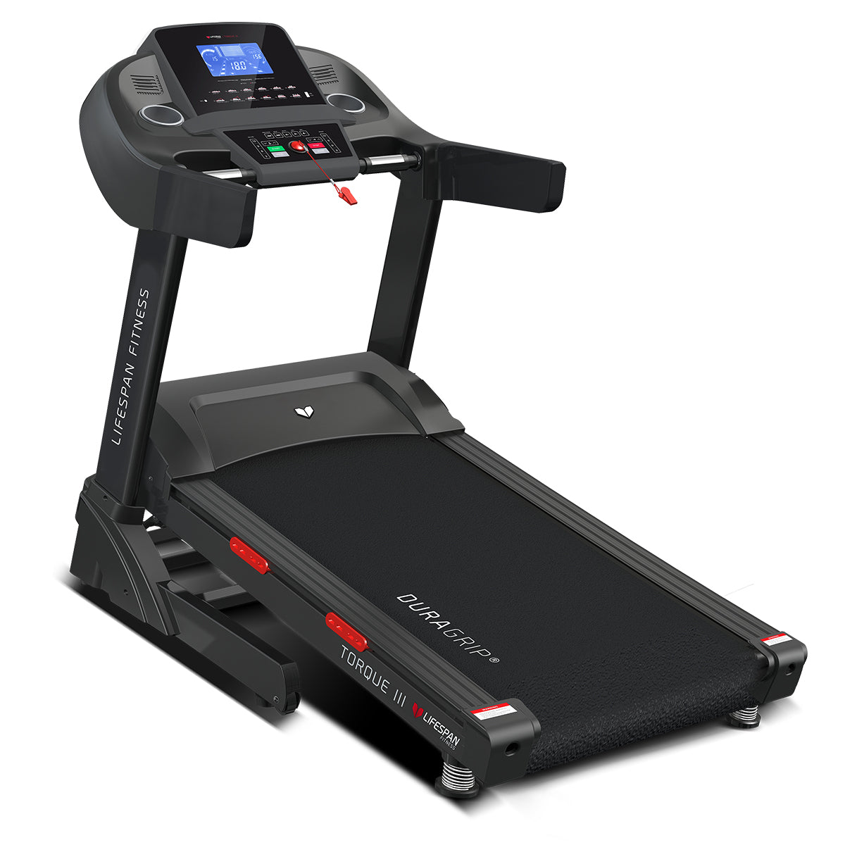 Get the personal trainer experience at home with the Lifespan Fitness Torque 3 treadmill. A whopping 99 preset training programs offer huge fitness challenges, and an additional 3 custom programs let you train your way. Feel confident at this pace on a spacious 1300mm x 540mm (Length x Width) running surface with the comfortable and safe DuraGrip® belt.