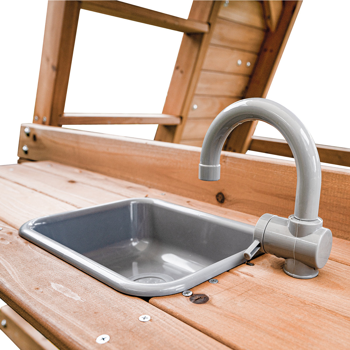 Lower hideaway area with bench/play kitchen