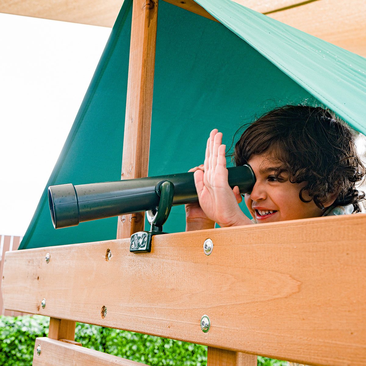 120cm high raised playhouse with noughts & crosses, telescope & chalkboard