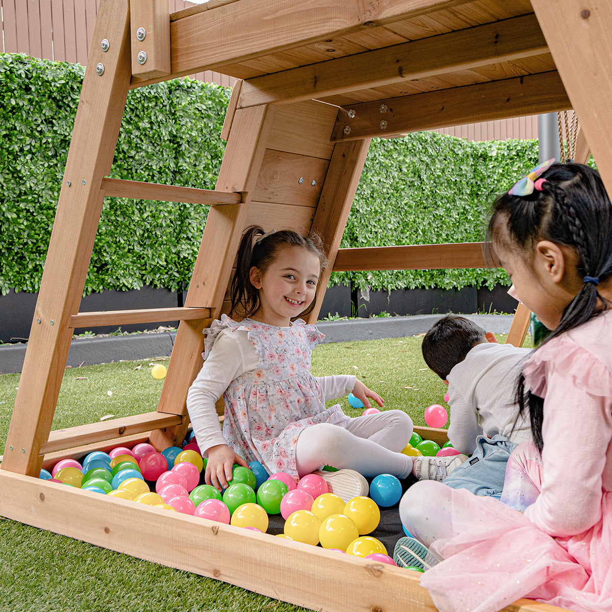 The Greenvale Play Centre is the perfect starter swing set, offering a safe and fun-filled environment for Aussie kids to explore and enjoy. Featuring a 1.8m wavy slide, a rock-climbing wall with ladder access, and a 2-position swing beam with two seat swings, this compact play centre is designed to spark imagination and promote active outdoor play. Built to withstand the elements with high-strength, powder-coated steel brackets, this play centre meets strict Australian Standards, ensuring a safe and sturdy environment for your children to enjoy active, imaginative play.