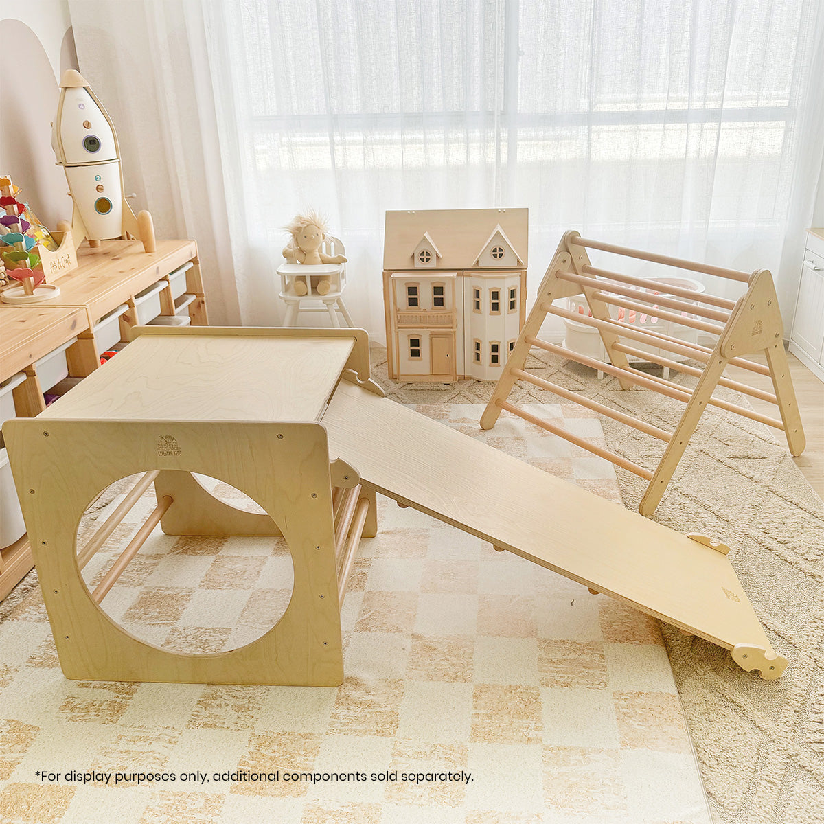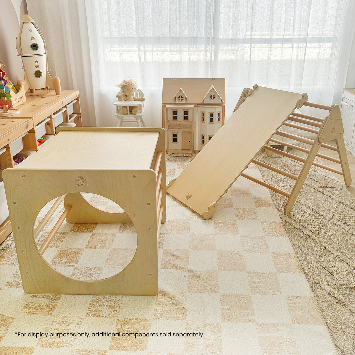 Experience an engaging, hands-on playtime with Pikler Climbing Frame Cube, a play structure designed for children aged 3 years and older. With a combination beechwood and birch plywood, this climbing structure offers a safe and durable environment for children to explore and enhance their motor skills. The robust design ensures stability during play and is less prone to splintering. With a focus on both safety and skill development, the Pikler Climbing Frame Cube is not only a source of fun but also serves as a valuable tool for early development. Its thoughtful design encourages climbing, balancing and coordination, promoting physical activity and healthy growth.