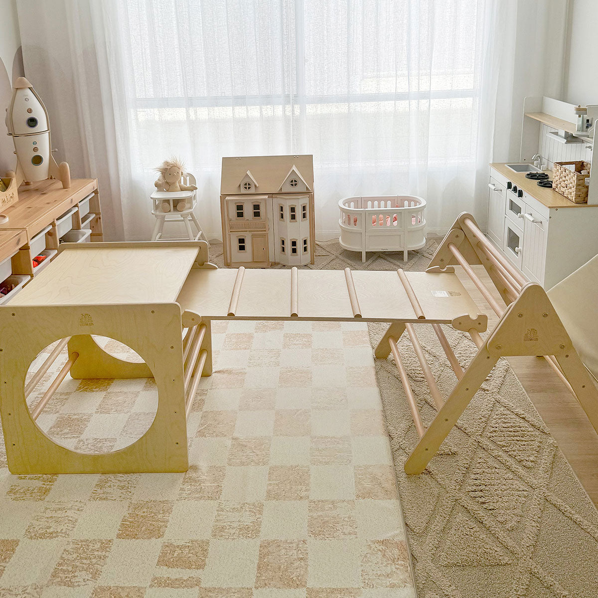 Experience the difference of tactile, active play with our Pikler Climbing Frame Package, featuring a Slide, Cube and Triangle. Suitable for ages 3 years and above, this package is crafted to promote both fun and early developmental growth. Each element in the package passes Australian Standards for safety, withstanding even the most rigorous play sessions. The climbing frame is a great tool for motor skill development, encouraging little ones to climb, slide and explore in a safe and controlled environment. Constructed from premium Birch Plywood and Beechwood, this package promises both durability and a natural aesthetic that seamlessly integrates into your living space. Elevate playtime and foster your child’s physical and cognitive development with our Pikler Climbing Frame Package.