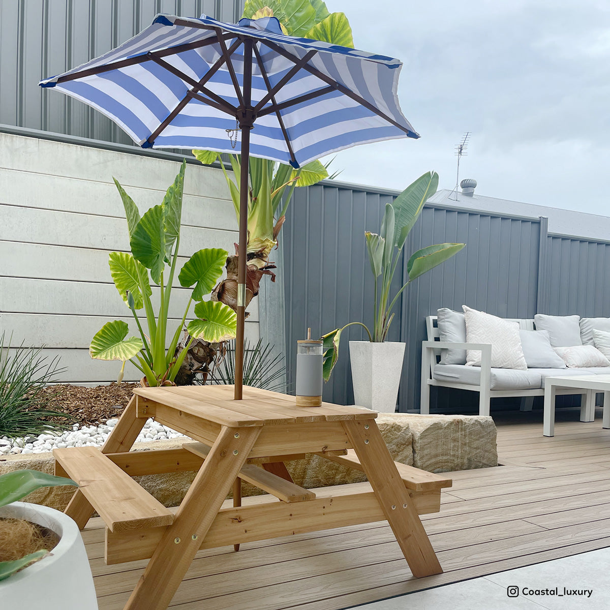 A world of possibilities awaits with the Sunrise Sand and Water Table from Lifespan Kids. They’ll be captivated with two nifty basins, great for holding sand and water. The durable construction and a UV protected removable umbrella keep your youngsters safe and sun smart outdoors.
