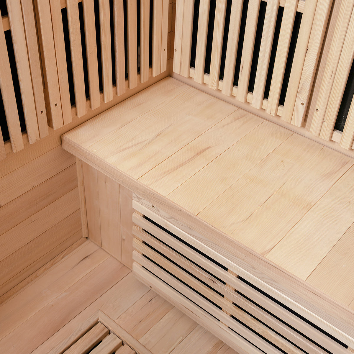 Elevate your wellness experience with the ReGen8 Trio Infrared Sauna, designed to accommodate three people comfortably, making it perfect for friends and family to enjoy together. This spacious sauna features advanced infrared heating technology that delivers deep, soothing warmth to improve circulation and relieve muscle tension. Crafted from durable Hemlock wood, the ReGen8 Trio is both durable and fits in with your cosy home aesthetic. All our saunas have been rigorously tested to meet strict standards, ensuring low EMF emissions and built-in safety features. Create cherished memories and prioritise your health in this inviting sauna that beautifully blends comfort and innovation.